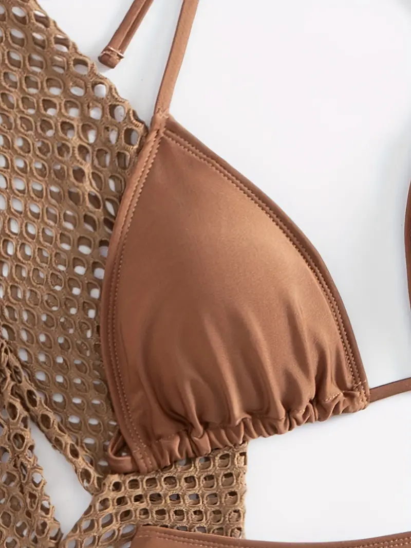 Elevate your beach style with this Triangle Bikini Set featuring a stylish cover-up! Perfect for sunbathing or beach parties, this three-piece set is designed for comfort and a flattering fit. Why you'll love it: - Premium stretchy fabric for comfortable wear. - Chic triangle design that enhances your figure. - Includes a trendy cover-up for versatile styling. - Ideal for all seasons, from summer to tropical getaways. - Easy to maintain with machine washable fabric. Crafted with 82% polyester and 18% spandex, this bikini set offers high elasticity and a perfect fit that flatters all body types. The simple solid color design ensures you look effortlessly chic without any patterns to distract from your natural beauty. To wear, simply put on the bikini top and bottom, and layer with the cover-up for added style when walking to the beach or pool. Don’t miss out on this exclusive beach essential – grab yours now for a limited time!